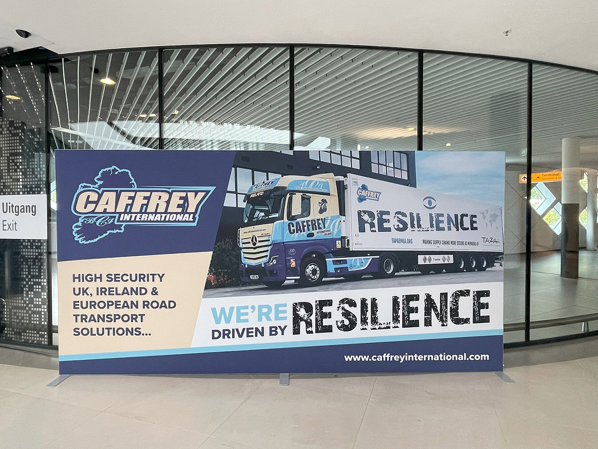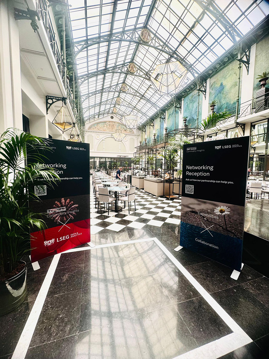Flexible and eye-catching branding ideal for networking zones or refreshment areas, enhancing sponsor visibility and guiding guests.